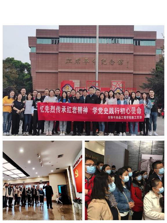 4月10日-11日,为庆祝建党100周年和贯彻落实党史学习教育,生物与食品工程学院党总支组织30名教师党员赴重庆渣滓洞、红岩村和重庆抗战遗址博物馆开展“忆先烈传承红岩精神,学党史践行初心使命”主题党日活动。