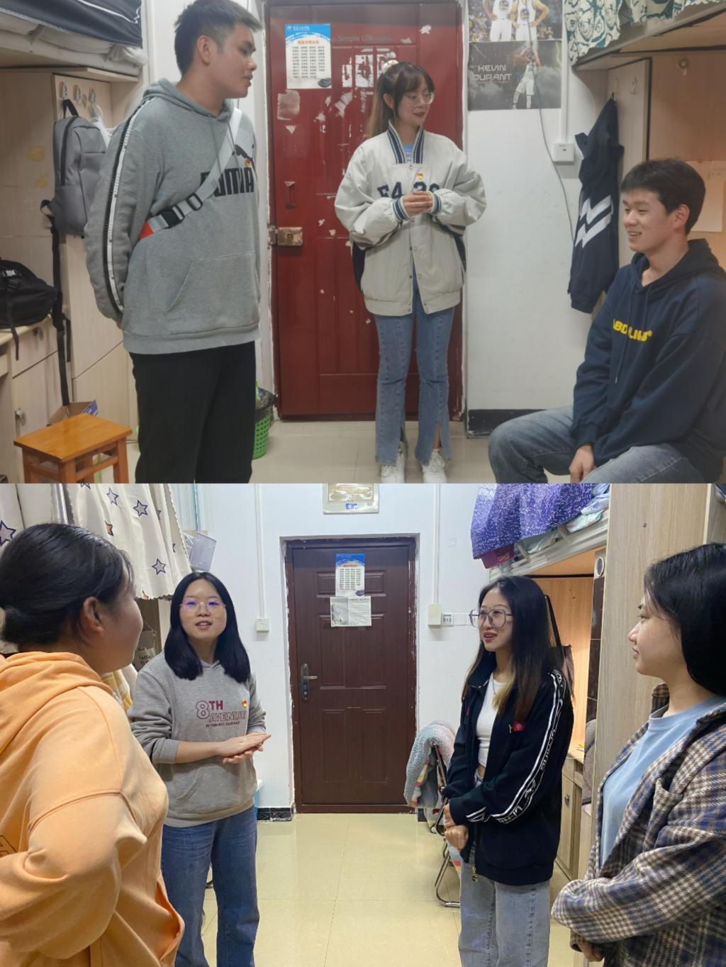 四、走访新生寝室,传递党的温暖——分享大学校园生活经验,指导学业规划