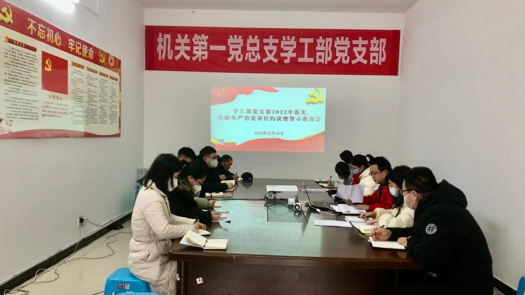 2022年12月30日上午,学工部党支部在众创空间102召开2022年落实全面从严治党责任约谈暨警示教育会。支部全体党员参加,会议由宣传委员蒋雪梅主持。