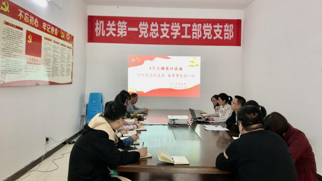 2023年4月10日,学工部党支部在众创空间102开展了“对标先进找差距 奋勇争先创一流”4月主题党日活动。活动由党支部书记任江林主持,党支部全体党员参加。