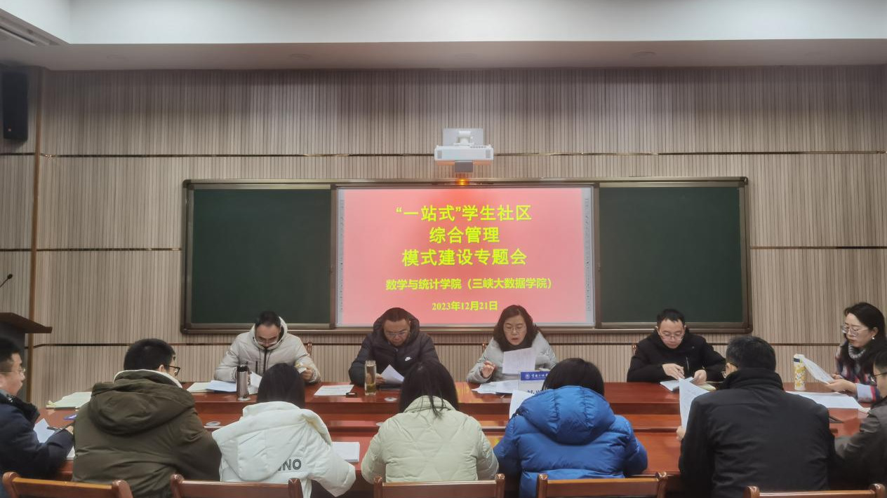 2023年12月21日上午,数学与统计学院(三峡大数据学院)召开年终党建工作布置会,会上对“一站式”学生社区综合管理模式建设做了专题研究。学院班子成员、总支委员、各支部书记、支委和全体辅导员参加。