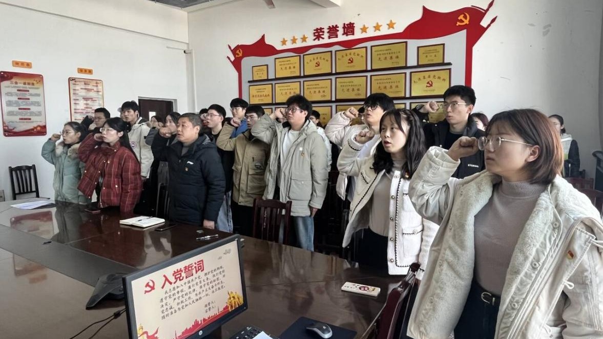 面向鲜红的党旗,廖红富举起右拳,带领新党员庄严宣誓,全体老党员重温入党誓词:“我志愿加入中国共产党,拥护党的纲领,遵守党的章程,履行党员义务,执行党的决定,严守党的纪律,保守党的秘密,对党忠诚,积极工作……”坚定有力的宣誓声响彻会场。