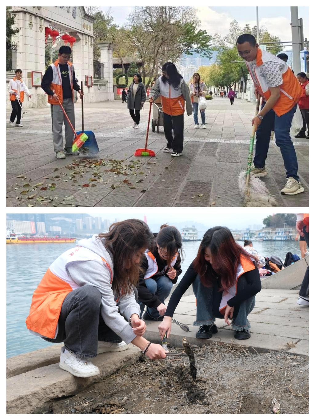 本次志愿活动以长江沿江步道和社区街道两个区域清理为主。活动成员分为两队,分别对沿江亲水步道、健康步道上的白色垃圾进行了清理。大家通过劳动,使长江沿岸的垃圾有效减少,江岸环境面貌得到改善。随后,全体来到社区街道,分工协作,帮助环卫工人清理路面垃圾,用实际行动引导教育群众保护环境。