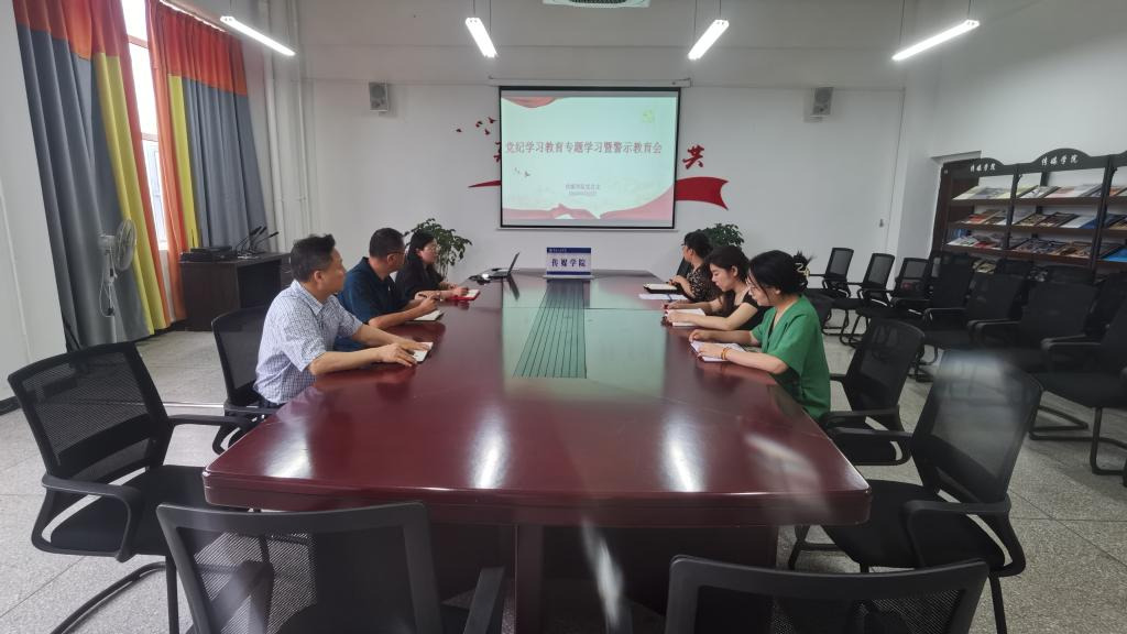 为进一步以更高标准更严要求更实作风推动党纪学习教育走深走实,强化示范引领,先学一步、学深一层,6月25日上午,传媒学院党总支委员、处科级干部在博学楼5C311会议室开展党纪学习教育专题学习暨警示教育会。会议由学院党总支书记孙国英同志主持。
