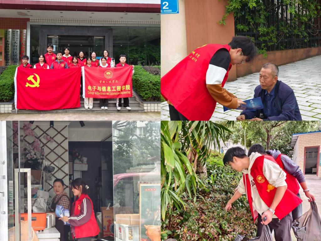 为深入学习贯彻党的二十届三中全会精神,充分发挥基层党组织战斗堡垒作用和党员先锋模范作用,10月24日下午,电子与信息工程学院学生党支部前往天台社区开展志愿服务活动。此次活动主题为“聚焦民生办实事,服务群众佑安康”,主要围绕反诈知识宣传、改善社区卫生环境、线上观看红色影片三个方面展开。