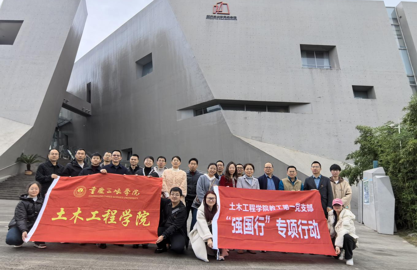 为深入学习贯彻习近平总书记关于教育的重要论述和党的建设的重要思想,推动实施高校“双带头人”教师党支部书记“强国行”专项行动,2024年11月23日,土木工程学院教工第一党支部“强国行团队”联合院内师生党支部赴三峡移民纪念馆开展教育实践活动。