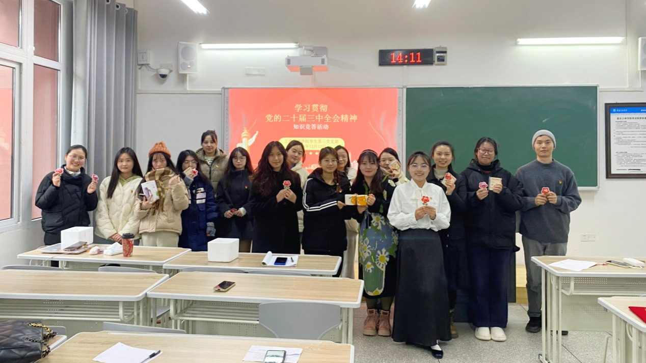 为深入学习贯彻党的二十届三中全会精神,提升学生党员思想政治素养和理论水平,汲取改革创新的奋进力量,推动党的二十届三中全会精神学习走深走实,工商管理学院学生第三党支部于12月12日组织开展了以“共勉互竞凝心,共进互学增信”为主题的学习贯彻党的二十届三中全会精神知识竞赛。
