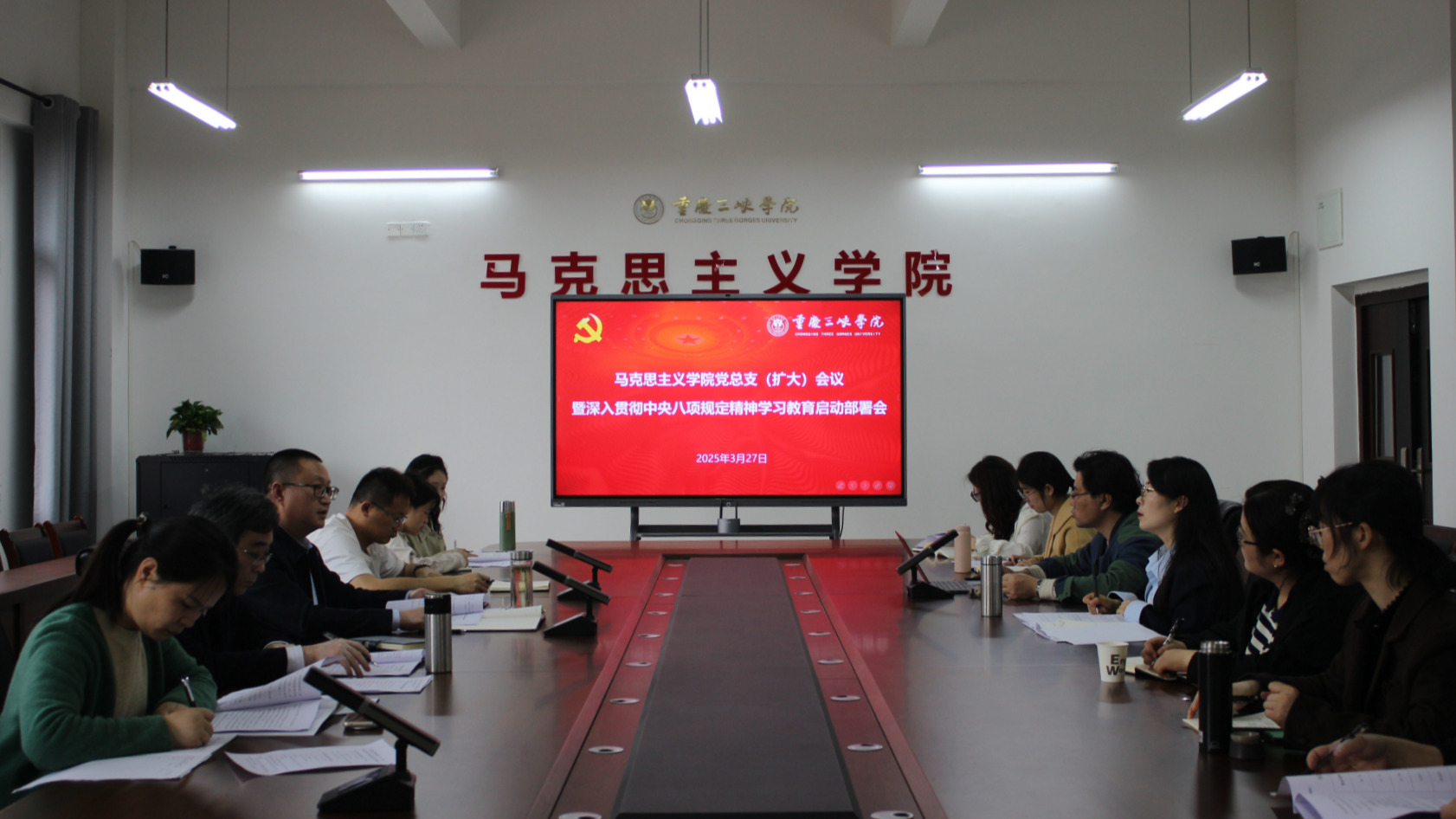 3月27日,马克思主义学院党总支召开深入贯彻中央八项规定精神学习教育启动部署会。会议由学院党总支书记秦勤主持,党总支副书记、委员及各党支部书记、委员参加会议。