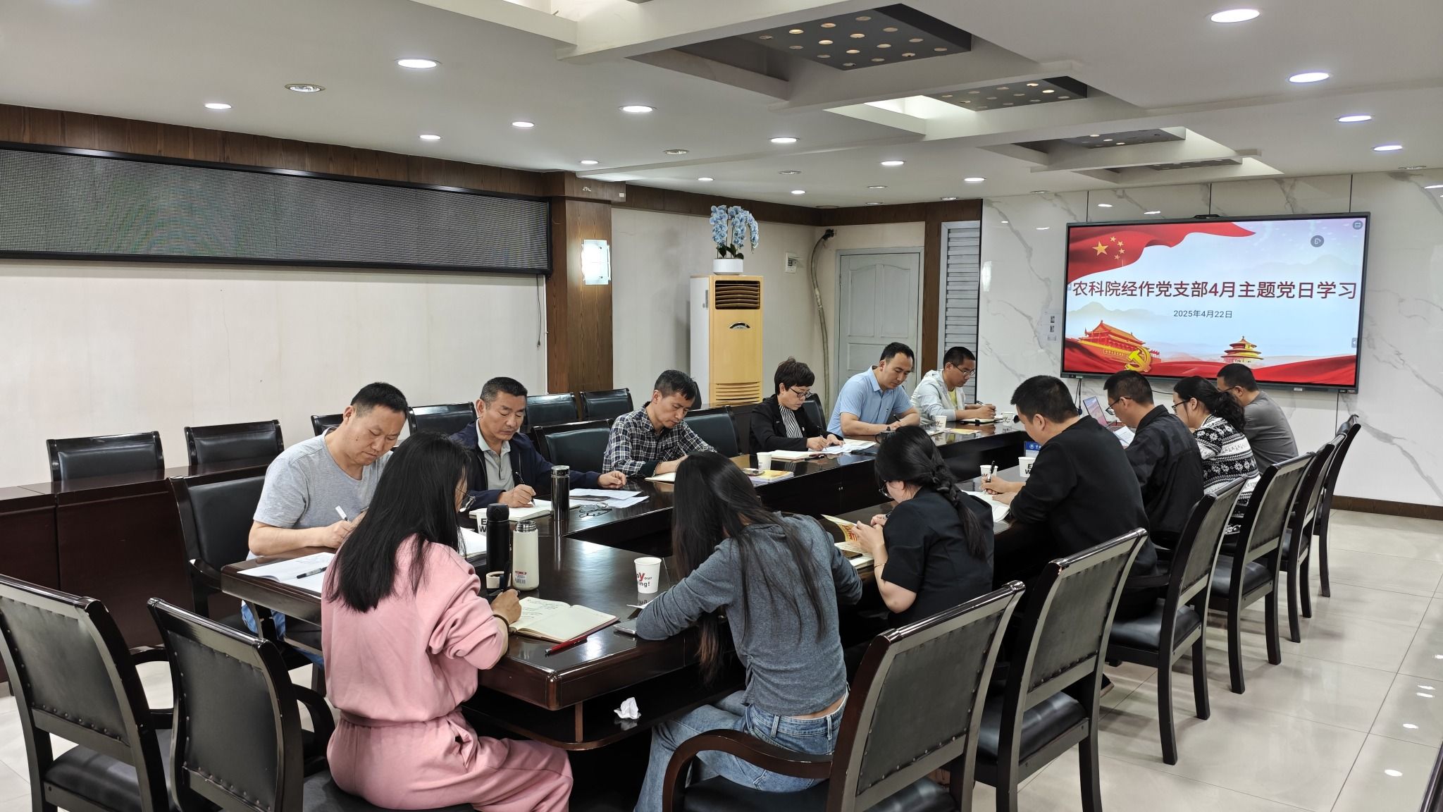 2025年4月22日,三峡农科院经作党支部在院本部2楼会议室以“深学细悟筑根本,躬身笃行践初心”为主题,开展了4月主题党日活动。党支部书记主持会议,党建指导员、院党委副书记、副院长廖淑梅,党委委员、副院长李智念以及党支部全体党员参加会议。