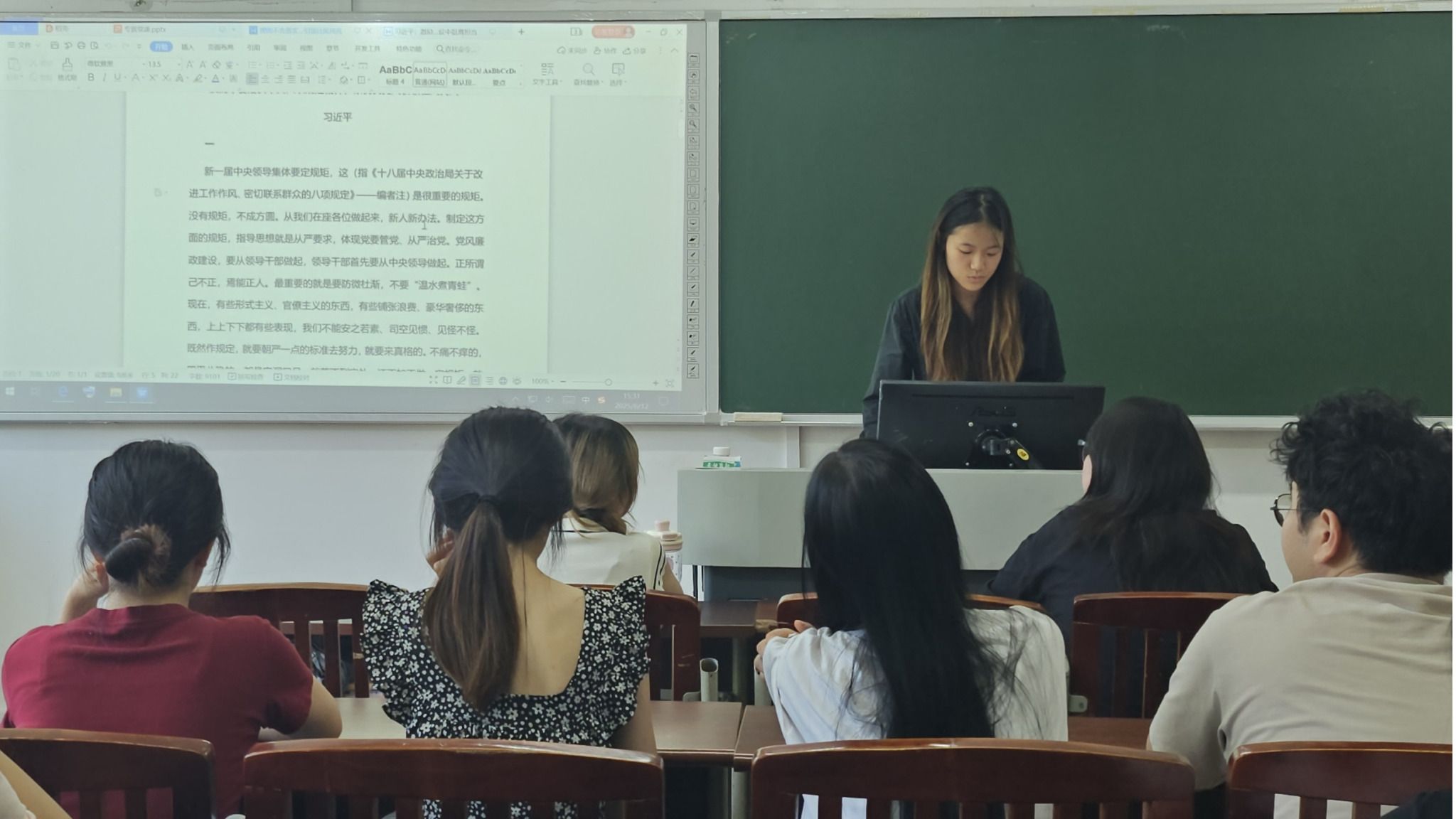 陈婷婷同志领学《锲而不舍落实中央八项规定精神,以优良党风引领社会民风》,号召党支部党员要深刻认识到中央八项规定精神的长期性和严肃性,推动中央八项规定精神内化于心、外化于行,在日常工作与生活中发挥先锋模范作用。