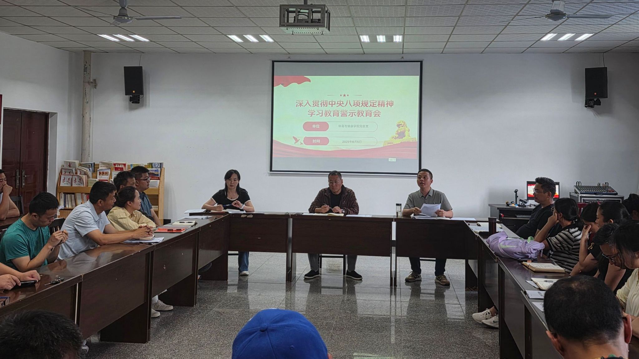 为持续筑牢作风建设思想防线,推动全面从严治党向纵深发展,6月5日,体育与健康学院党总支组织学院全体教职工于笃行楼4栋410会议室召开“以案为鉴 警钟长鸣”深入贯彻中央八项规定精神学习教育警示教育会,会议由体育与健康学院党总支副书记刘建宇主持。