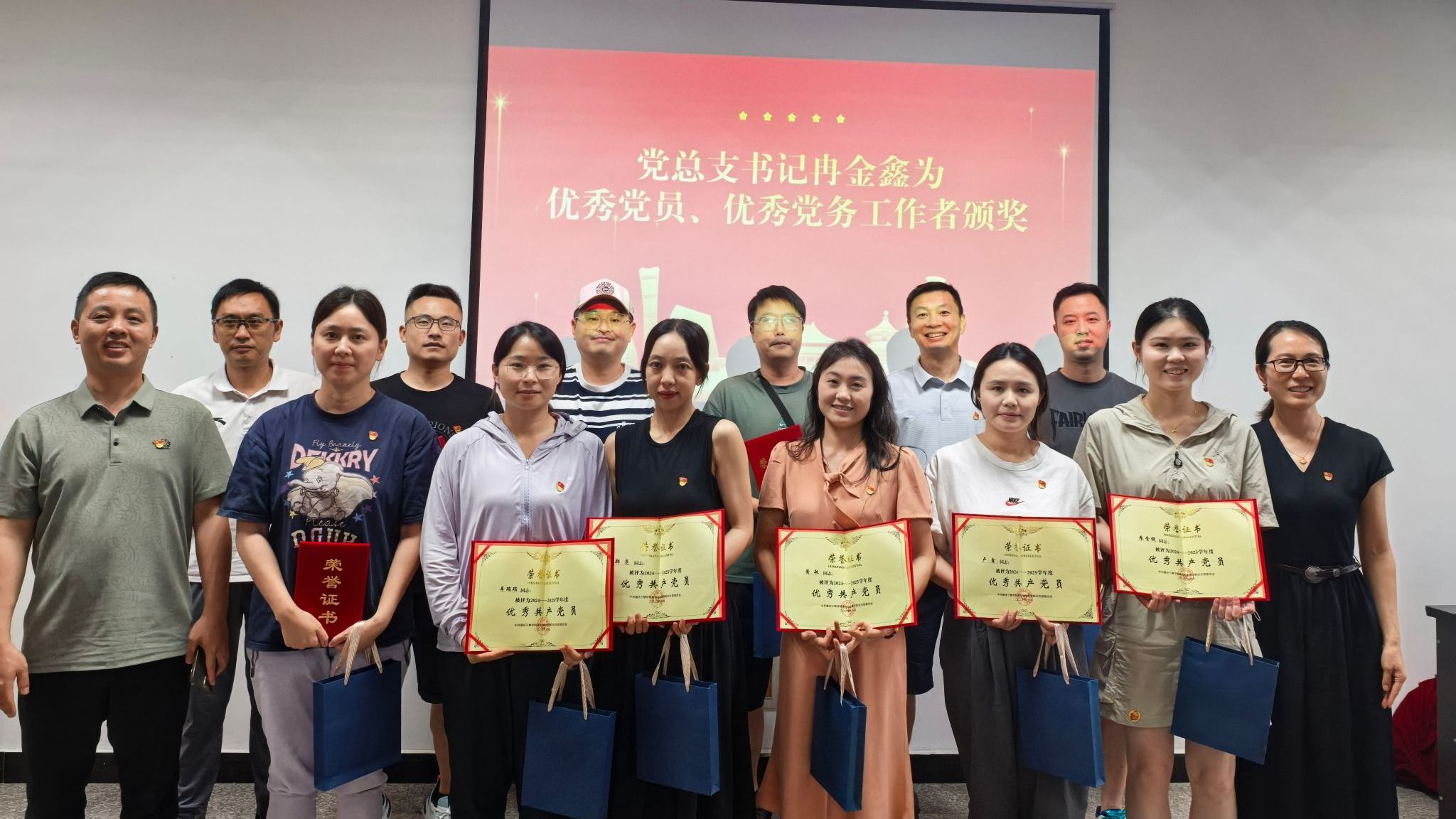 随后,党总支组织委员胡彩凤宣读了2024-2025学年度优秀共产党员、优秀党务工作者名单。在热烈的掌声中,冉金鑫为受表彰党员颁发荣誉证书,勉励他们珍惜荣誉、再接再厉,以更高标准发挥先锋模范作用。