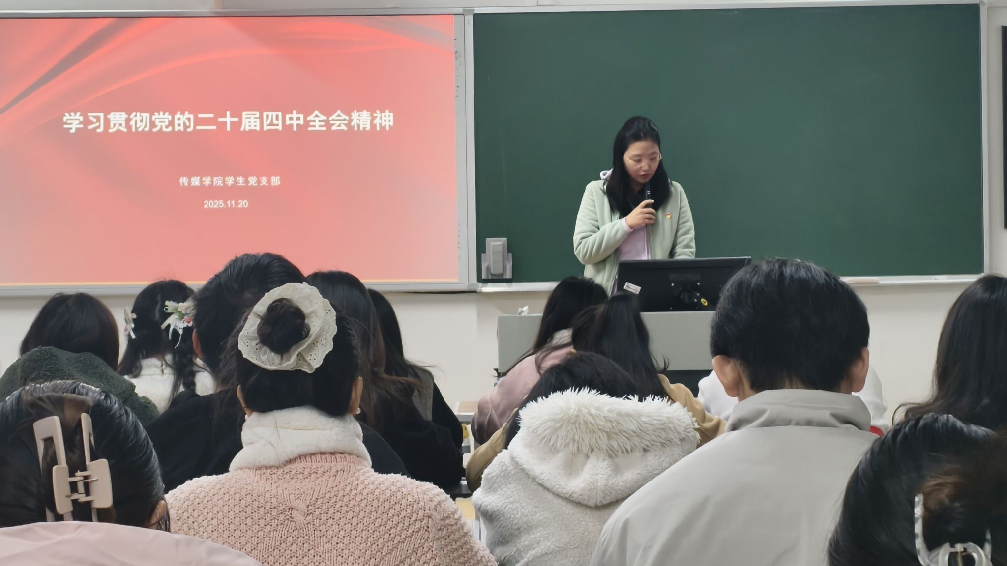 为深入学习贯彻党的二十届四中全会精神,引导青年学生党员准确把握国家发展大局与时代使命,11月20日,传媒学院学生党支部在博学楼2栋112组织开展了“凝聚磅礴奋进力量,开创未来崭新格局”主题党日活动。