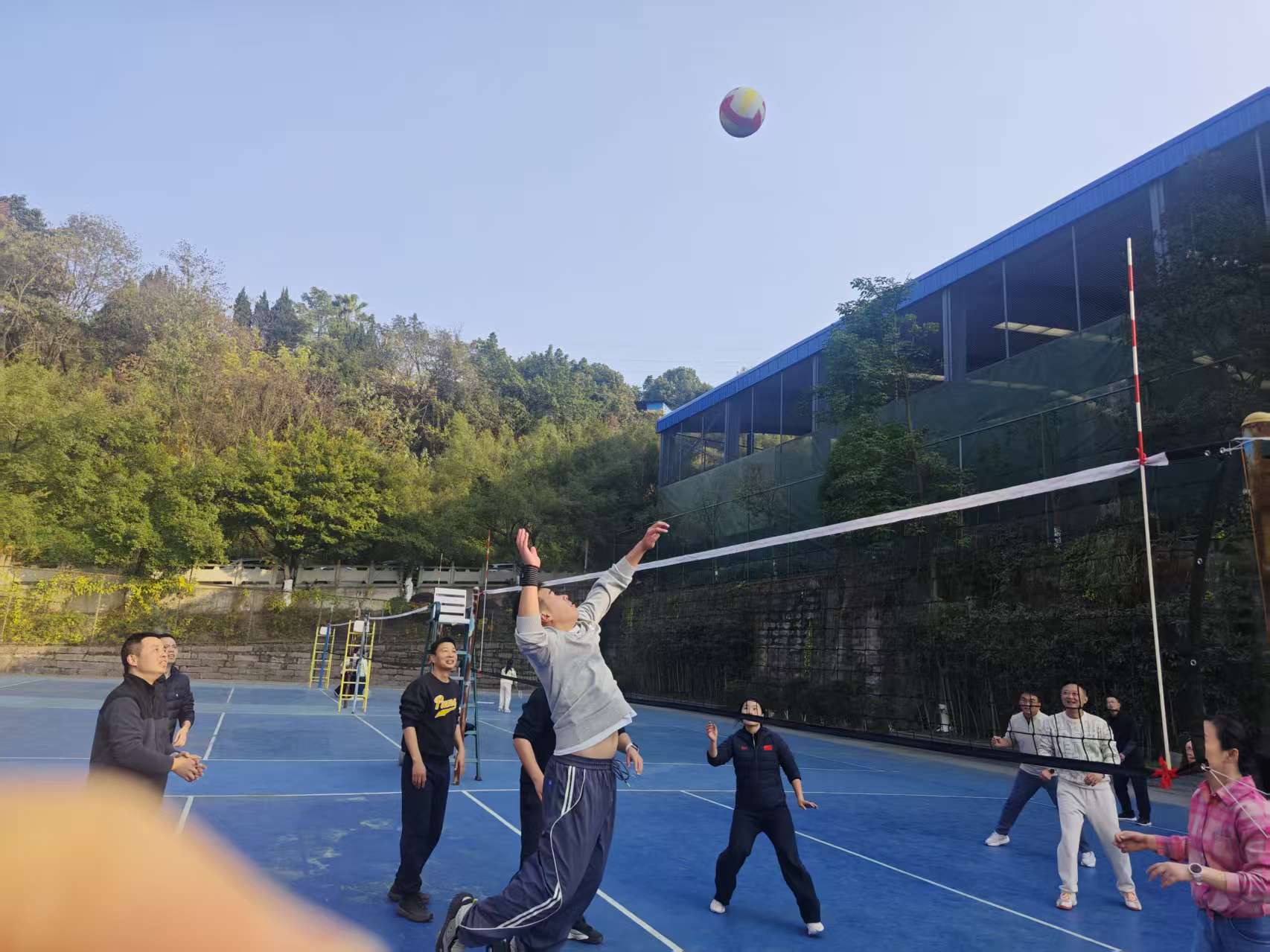 随后,全体党员移步排球场开展气排球友谊赛。赛场上,党员同志们精神饱满、斗志昂扬,既有默契的战术配合,也有顽强的拼搏争先,生动展现出团结协作、奋发有为的精神风貌。此次主题党日活动将理论学习与体育实践有机结合,不仅深化了党员的思想认识与理论素养,更有效提升了党支部的凝聚力与向心力,为奋进新征程、担当新使命汇聚起坚实力量。