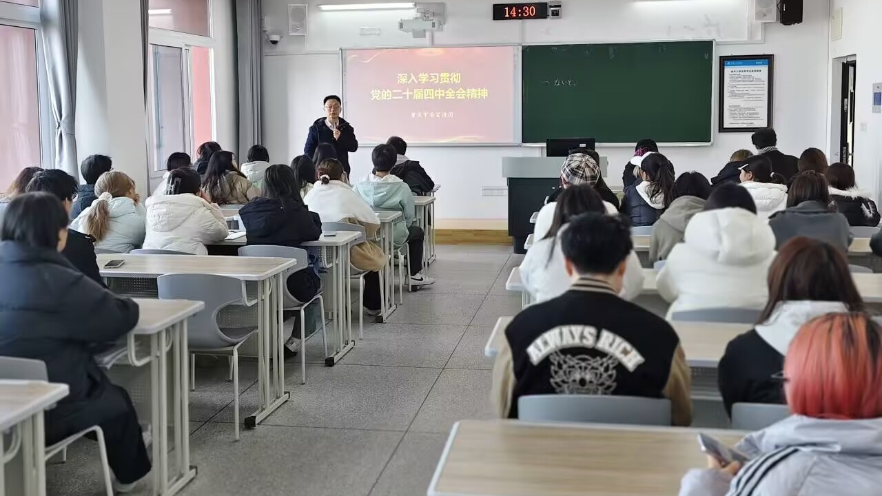 赵翔宇聚焦全会审议通过的《中共中央关于制定国民经济和社会发展第十五个五年规划的建议》,向大家阐释了全会召开的时代背景、重大意义、国家“十四五”时期取得的非凡成就以及“十五五”时期的战略部署。结合重庆市及高等教育领域实际,他分析了“十五五”规划建议中蕴含的重大机遇。他指出,党的二十届四中全会部署中关于科技创新、产业升级、人才培养、区域协调发展等内容,为我院在新时代聚焦国家战略需求、优化学科布局、提升人才培养质量、服务地方经济发展指明了方向。