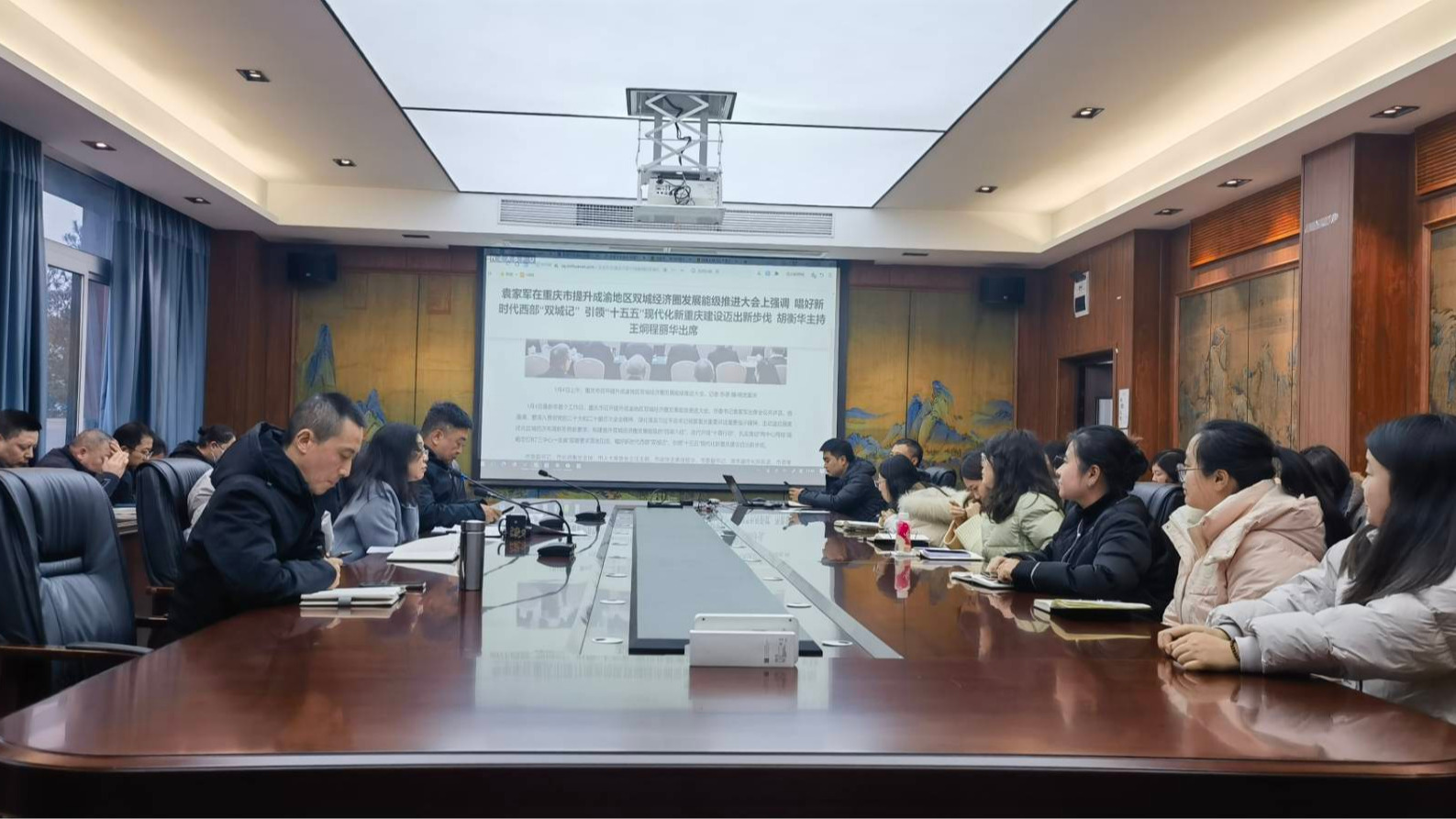 1月13日下午,文学院党总支组织全体党员开展集中学习,聚焦重庆市提升成渝地区双城经济圈发展能级推进大会部署要求,深入领会重庆市委书记袁家军讲话中关于区域协同、文化赋能等核心内涵。学习会由文学院党总支书记唐晓萍主持,全体党员通过原文研读、交流研讨等形式,精准把握会议实践要求,探索学科优势与区域发展的结合路径。