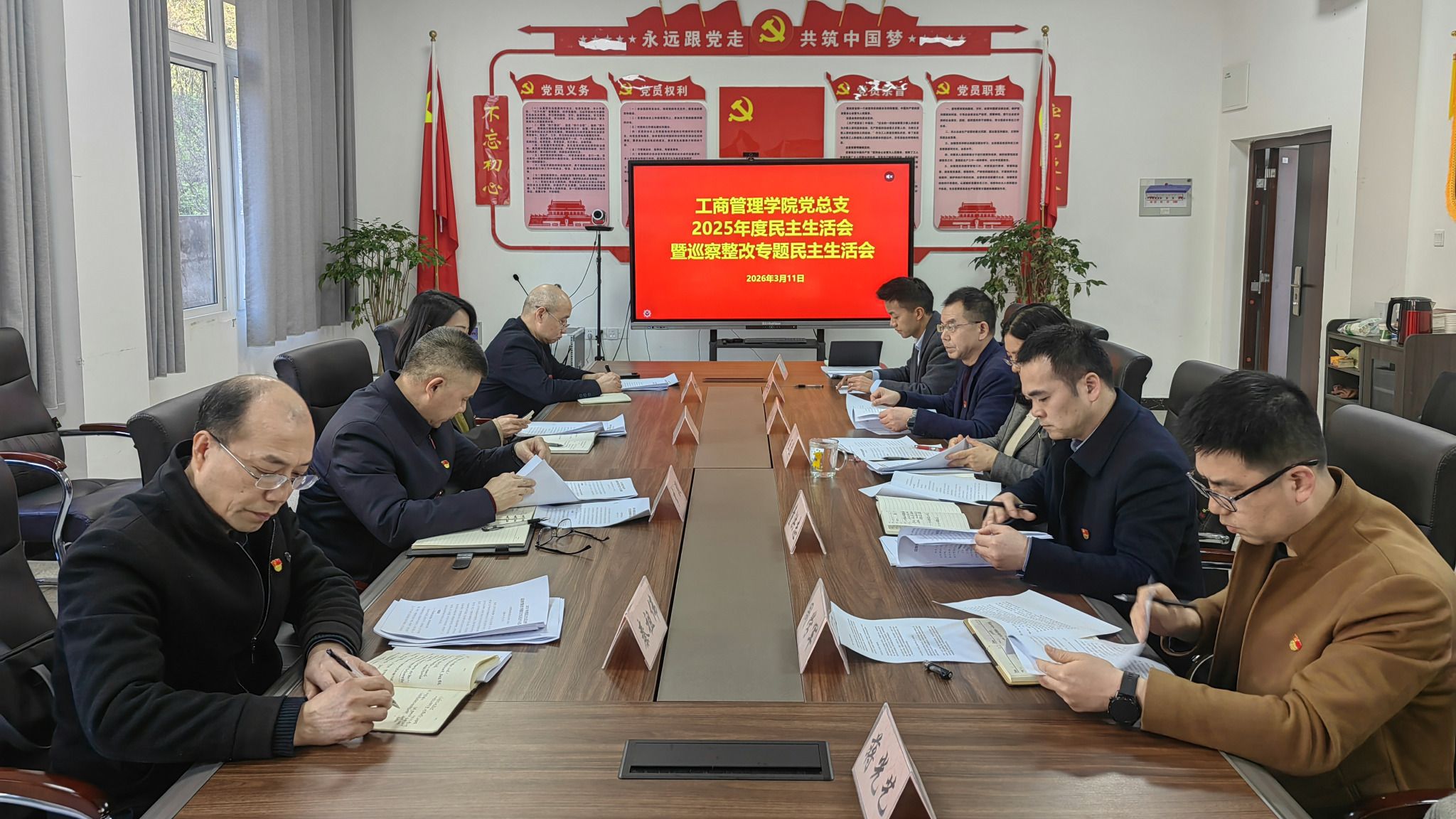 3月12日,工商管理学院党总支在博学楼3栋119会议室召开2025年度党员领导干部民主生活会暨巡察整改专题民主生活会。学院党总支书记刘亚兰主持会议,学院领导班子全体成员参加会议。学校党委副书记、校长李敬到会指导。学校纪委委员秦祖伟,党委巡察办公室副主任姜希,学院专职组织员谭力列席会议。