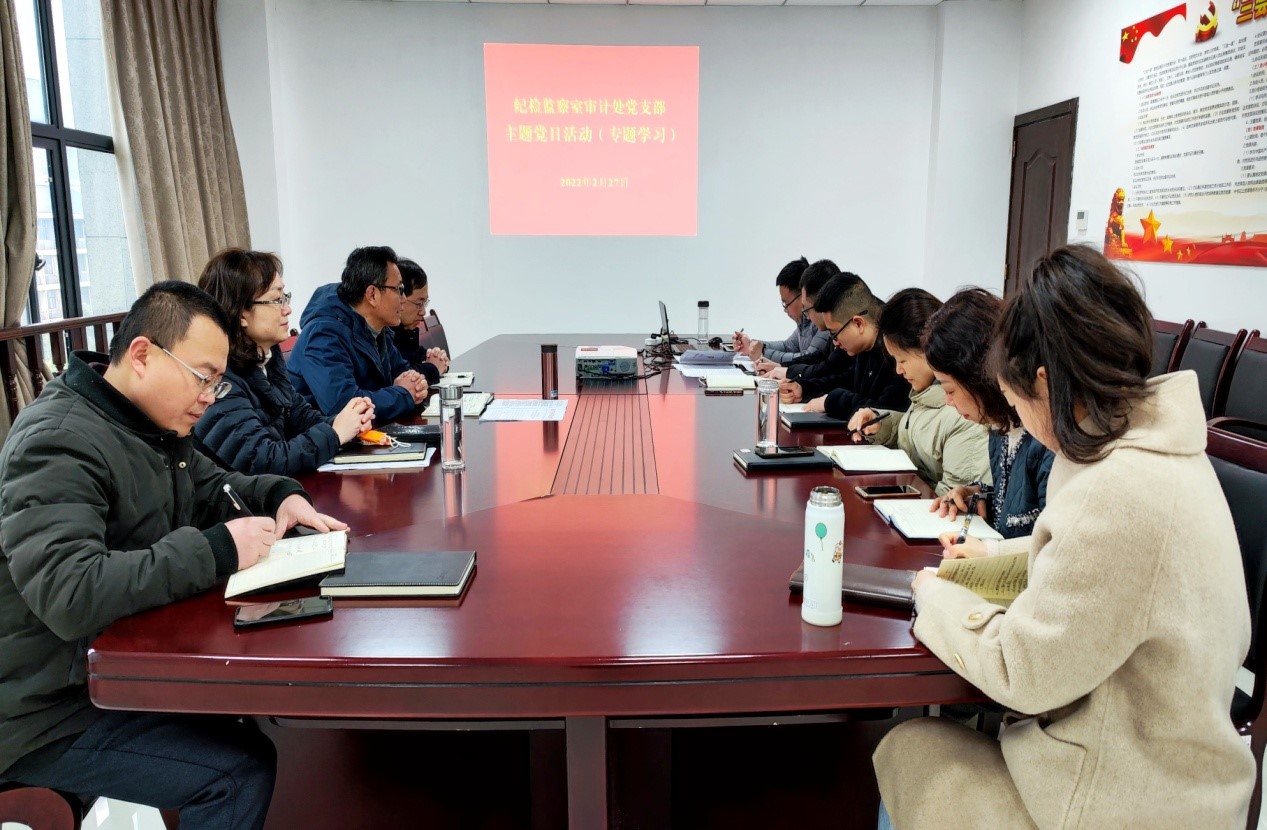为深入学习贯彻习近平总书记在十九届中央纪委六次全会上重要讲话精神,坚持严的主基调不动摇,坚持不懈把全面从严治党向纵深推进。2022年2月27日,纪检监察室审计处党支部开展主题党日活动,专题学习贯彻十九届中央纪委六次全会精神。学校党委常委、纪委书记、驻校监察专员代远红同志,纪检监察室、审计处全体党员参加。会议由支部书记刘平清同志主持。