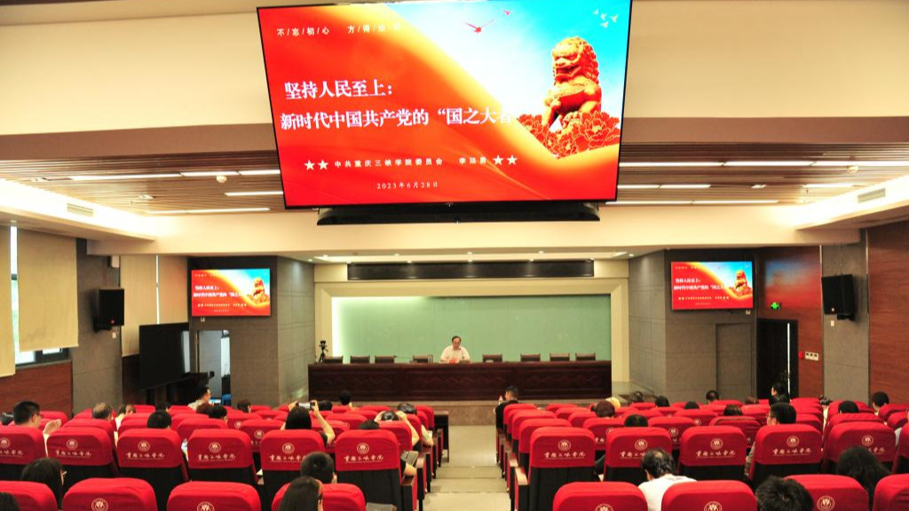 李廷勇以《坚持人民至上:新时代中国共产党的“国之大者”》为题讲授。他动情地说:“中国共产党从石库门到天安门,从兴业路到复兴路,从嘉兴南湖上的一叶红船,到领航复兴伟业的巍巍巨轮。今天,中国共产党已经发展成为一个走过百年光辉历程、在最大的社会主义国家执政70多年、拥有1亿多党员的世界上最大的马克思主义执政党,得到了14亿多中国人民最广泛的支持和拥护。中国共产党的‘制胜密码’到底在哪里呢?”