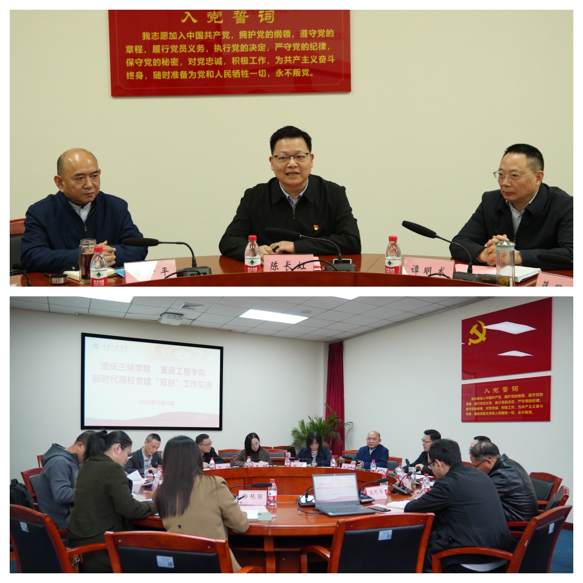 在交流会上,陈长虹书记分享了重庆工程学院坚持“一手抓规范,一手抓示范”的党建工作思路,学校通过强化创新机制、基础建设和综合保障,形成了党建有认识、党建有氛围、党建有阵地、党建有成效的“四有”党建格局。崔广平书记介绍了我校的基本情况以及新时代党建“双创”工作进展。他表示,重庆工程学院作为“重庆市首批新时代高校党建‘双创’示范高校”,已获批1个“全国高校党建工作标杆院系”和2个“全国高校党建工作样板支部”,推动了党的领导全面加强、基层组织全面过硬和党建质量全面提升,以创新落实新时代党的建设总要求引领学校事业高质量发展,特色明显、成效显著,值得我们认真学习和借鉴,期待在今后工作中进一步加强联系,深化校际交流合作。