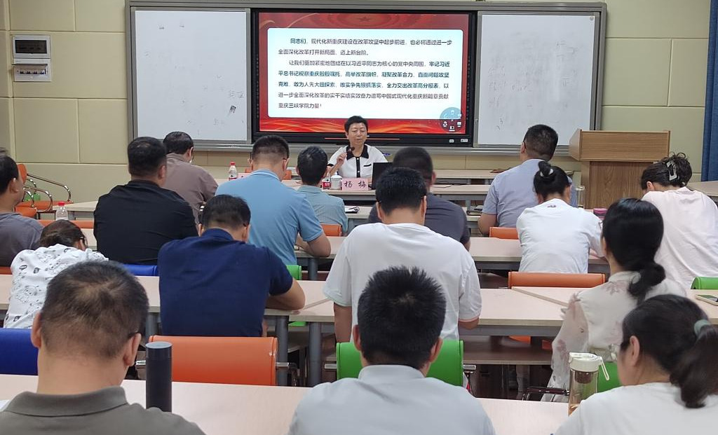 宣讲会上,杨梅从全会召开的背景及重要意义,深入学习领会习近平总书记在党的二十届三中全会上的重要讲话精神,全面准确理解《决定》提出的进一步全面深化改革重大举措,贯通学习习近平总书记对重庆改革工作的系列重要指示要求,全力以赴抓好全会精神贯彻落实五个部分,进行系统宣讲和深入阐释。杨梅指出,生工学院要将党的二十届三中全会精神转化为实际行动,踏实工作、持续奋斗,积极为学校发展贡献自己的力量。
