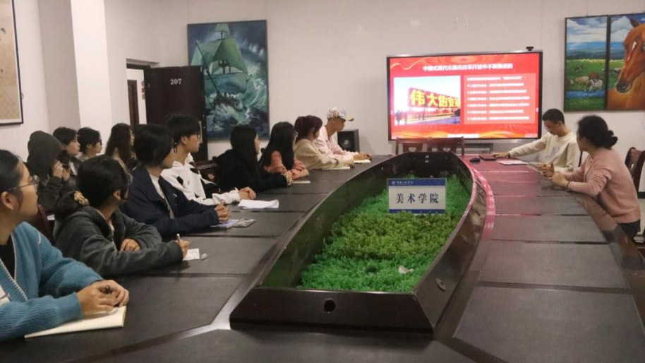2024年10月12日上午,学校党委常委、宣传部部长许文胜在博学楼5b-207会议室,面向美术学院2023级动画2班、2023级视觉传达设计2班、书画协会以及寝室的同学们宣讲了党的二十届三中全会精神。