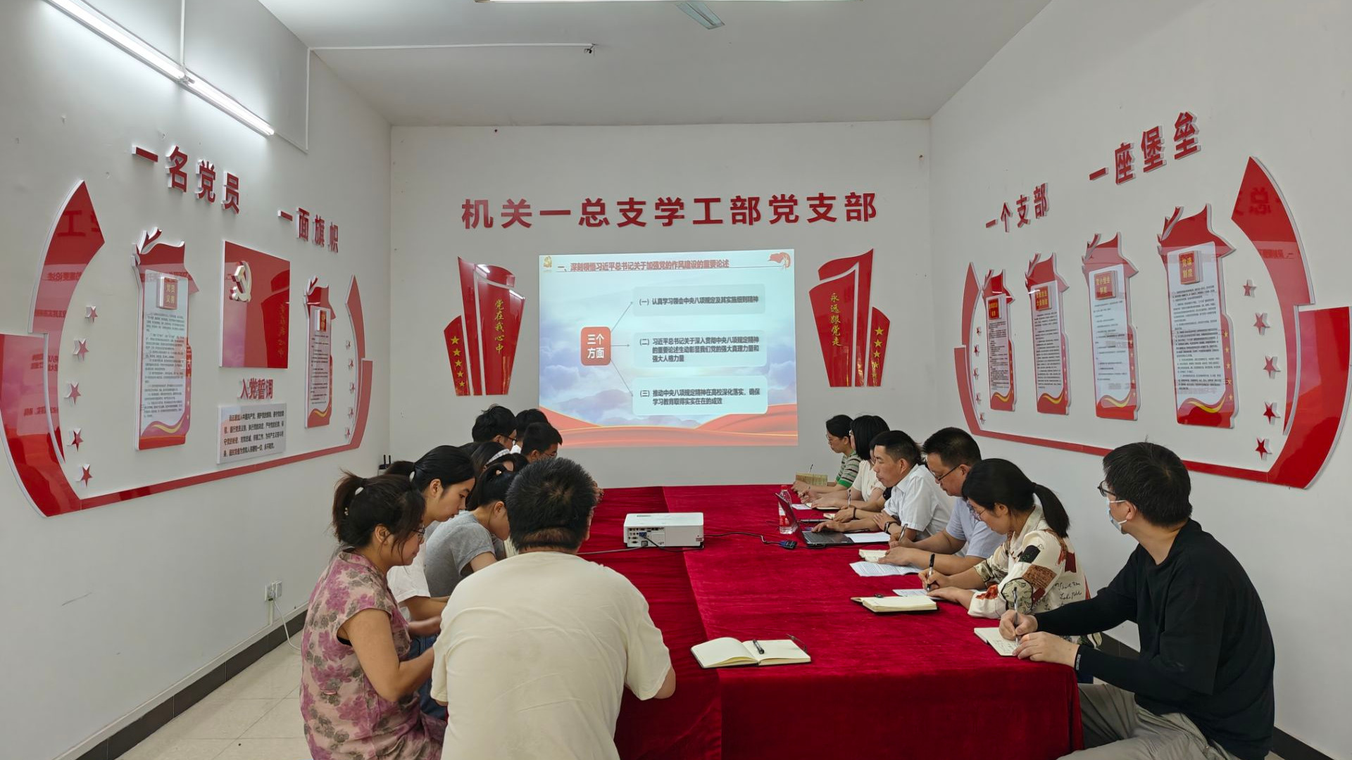 6月16日,学校党委常委、副校长尹立孟以《深入贯彻中央八项规定精神学习教育,以优良党风保障高质量发展》为题,为学工部党支部全体党员讲授深入贯彻中央八项规定精神学习教育专题党课。