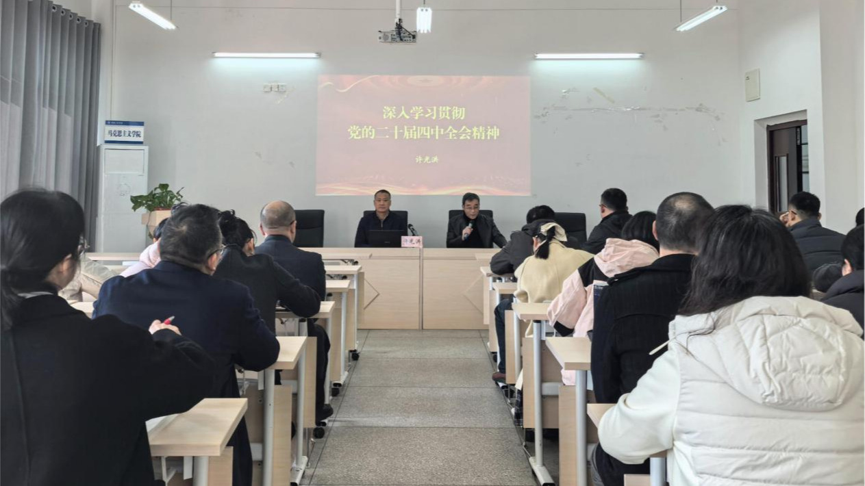 11月20日下午,校党委书记许光洪为马克思主义学院师生宣讲党的二十届四中全会精神。