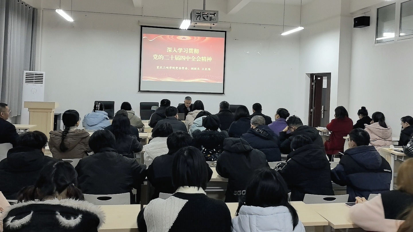12月25日晚上,学校党委常委、副校长王良伟在博学楼3-138为Betway必威西汉姆联官方网站师生开展党的二十届四中全会精神专题宣讲,会议由学院党总支书记鄢沛主持。